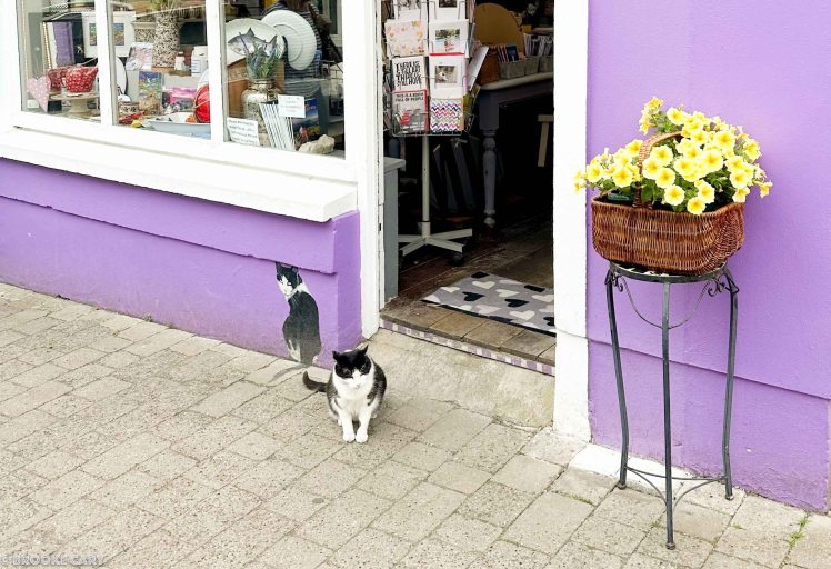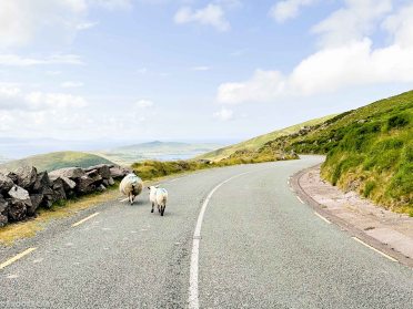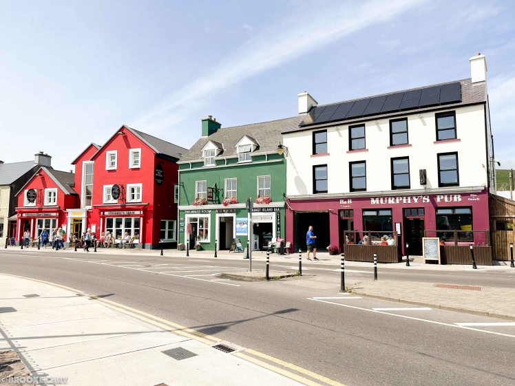 From Killarney, our route went up and over Conor Pass, one of the highest roads in Ireland. Thank goodness it wasn’t raining so we could see the views! We met up with some rogue sheep along the way and then we found ourselves in Dingle. The town is super cute with colorful buildings, quaint shops and a small harbor. It was bustling with people for the start of summer season.